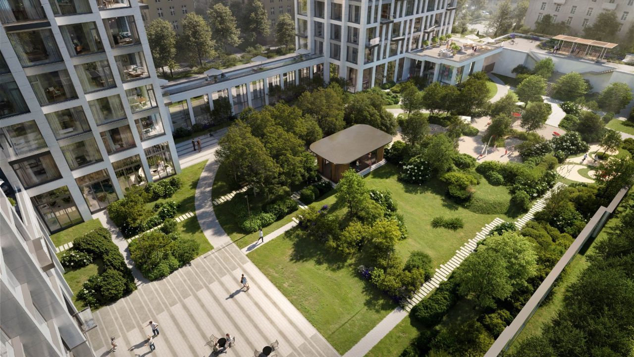 На внутренней территории квартала появится всесезонный сад площадью 1 га, разработанный архитектурной дизайн-студией GAFA. Он гармонично объединит в единую композицию все пространство квартала и привнесет дополнительные ноты умиротворения в атмосферу проекта. Во внутреннем дворе каждый найдет то, что ему по душе: места для занятий спортом и настольным теннисом, детские площадки, уединенные уголки для медитации и спокойного отдыха.